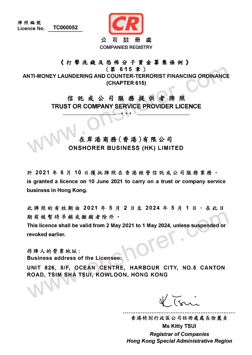 只有獲得TCSP秘書牌照的組織機(jī)構(gòu)才能具備做公司秘書的資質(zhì),只有由其交付的文件資料才能被政府承認(rèn)。因而在選擇秘書公司的時(shí)候,都應(yīng)該認(rèn)準(zhǔn)牌照資質(zhì),務(wù)必選擇一級代理。