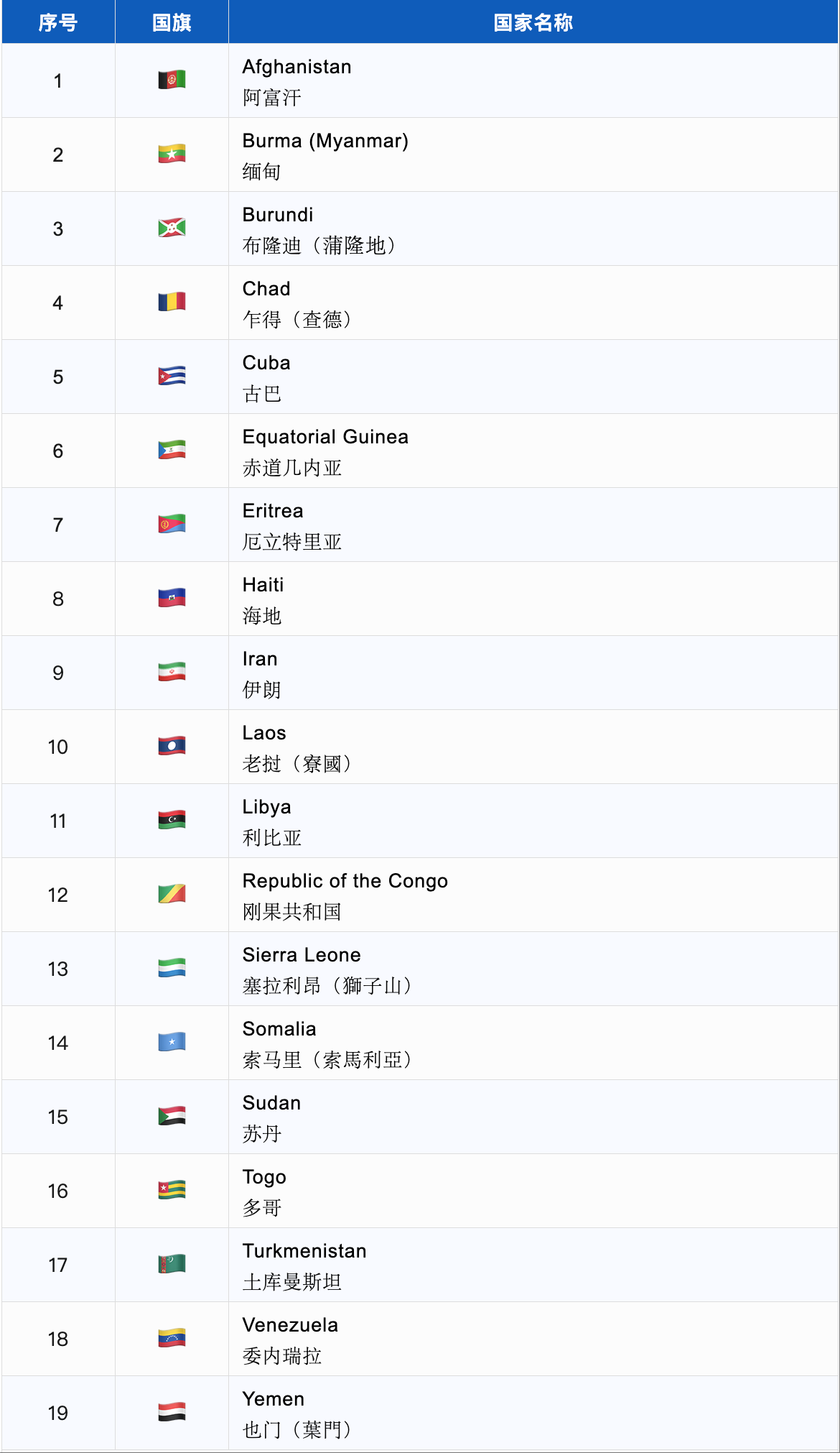 ▼19個(gè)禁令國(guó)家清單