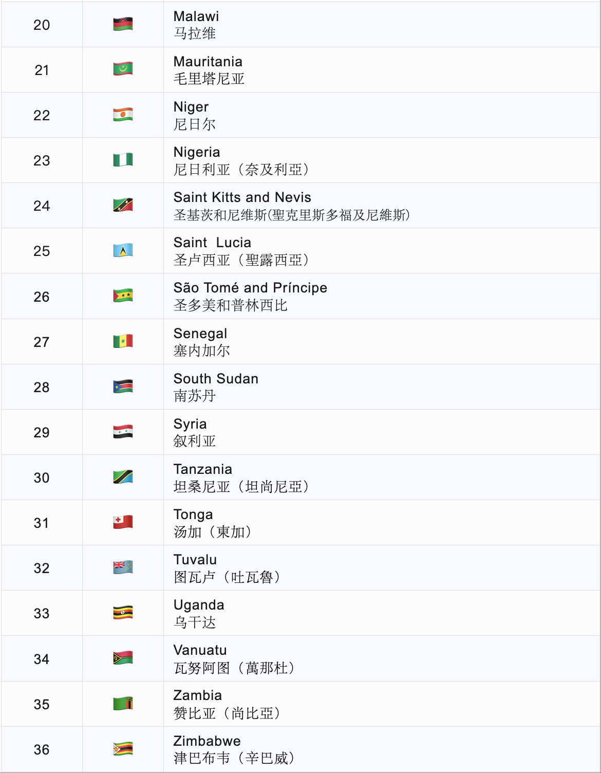 ▼將要實(shí)施的36個(gè)禁令國(guó)家清單