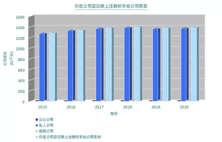 根據(jù)香港注冊處關(guān)于在港注冊公司數(shù)目的統(tǒng)計(jì),去年一年新成立的本地公司總數(shù)已經(jīng)接近100,000間。而從2015年到2020年的六年間,仍在公司登記冊上注冊的本地公司數(shù)目一直維持在較高水平。