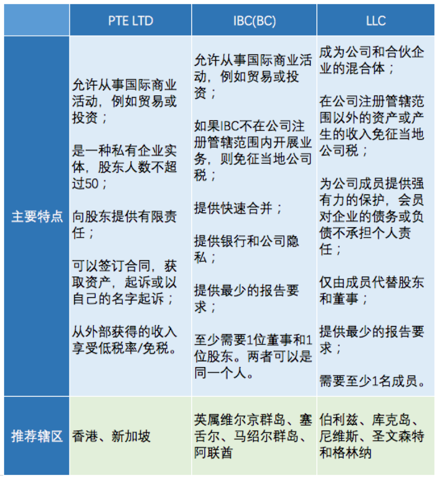 02 有3個離岸公司結(jié)構(gòu)被以往海外業(yè)務(wù)參與者廣泛選擇。分別是: